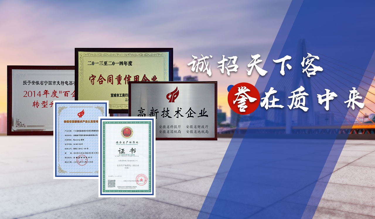 安徽麥特電子股份有限公司是專業(yè)研制電容器的高新技術(shù)企業(yè)。公司成立于2006年,注冊資金1000萬元,坐落于國家級寧國經(jīng)濟(jì)技術(shù)開發(fā)區(qū)河瀝園區(qū)。公司致力于金屬化薄膜電容器。和微波爐用高壓電容器的研發(fā)、生產(chǎn)及銷售。